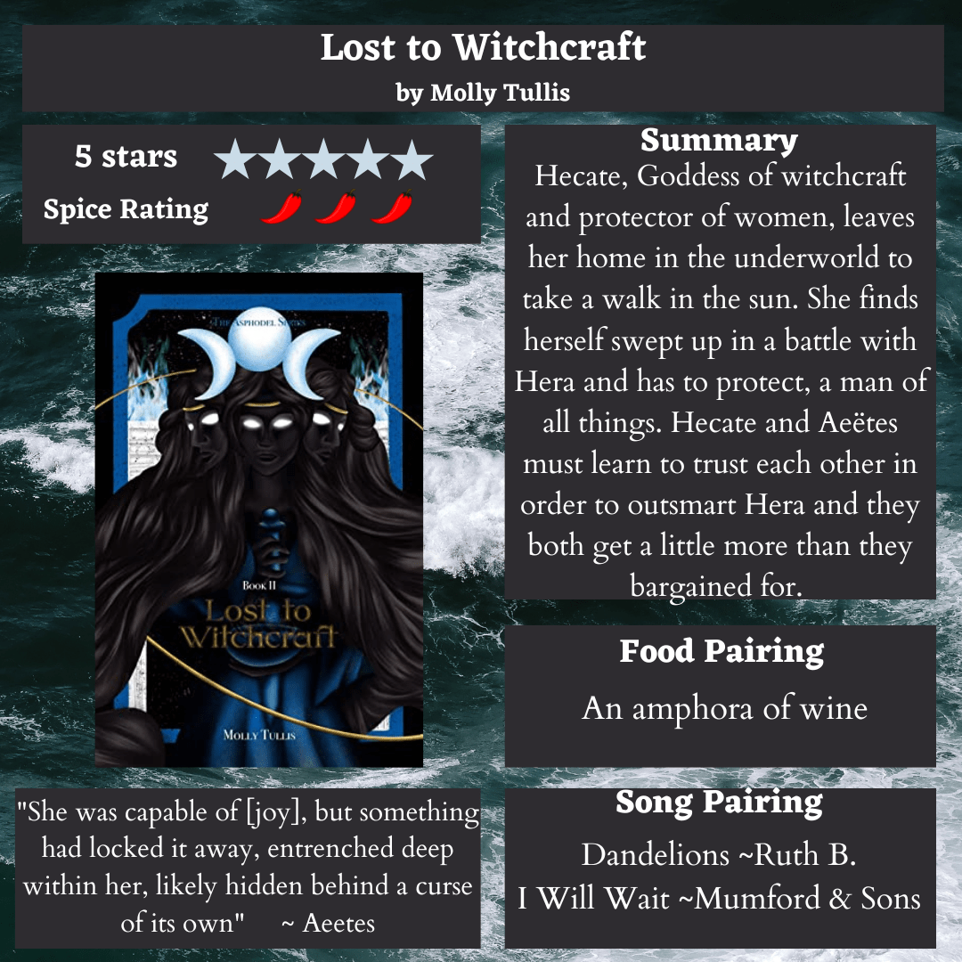 Hecate is a fabulous character in myth, and she deserves to have her own adventures and love story. Molly is incredible at writing complex female characters who battle self-doubt and trauma. She always twists in deep emotions that every one of us can relate to in some way. This was a story about self-acceptance, learning to trust and finding love. It is easy to connect with and fall head over heels with the characters and their journey.